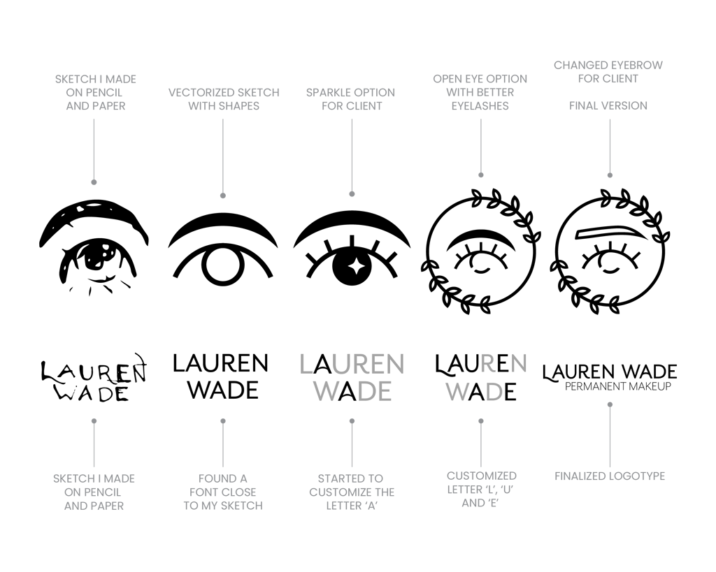 I started by reviewing common PMU branding trends, then moved into a full sketching phase using a wide-range concept approach. After exploring and refining ideas over time, the direction landed on a simple eye shape paired with a universal eyebrow form. The eyebrow was later adjusted to better match the client’s vision.